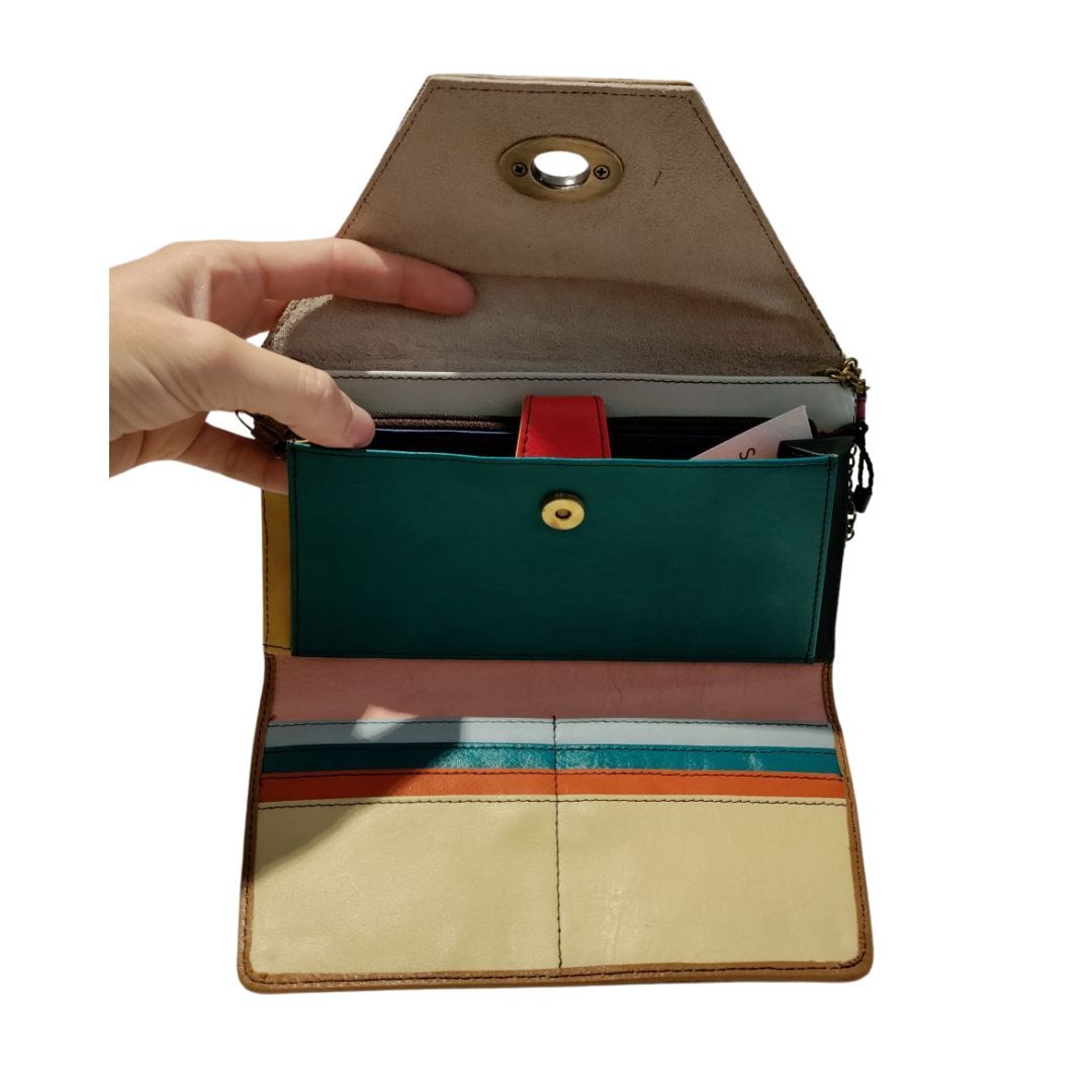 Además de los bolsos, la colección de Soruka también incluye una variedad de accesorios de piel, como carteras, tarjeteros y monederos, que complementan perfectamente cualquier conjunto. Cada accesorio está diseñado con la misma atención al detalle y la calidad artesanal que caracteriza a la marca, garantizando durabilidad y estilo en cada pieza.