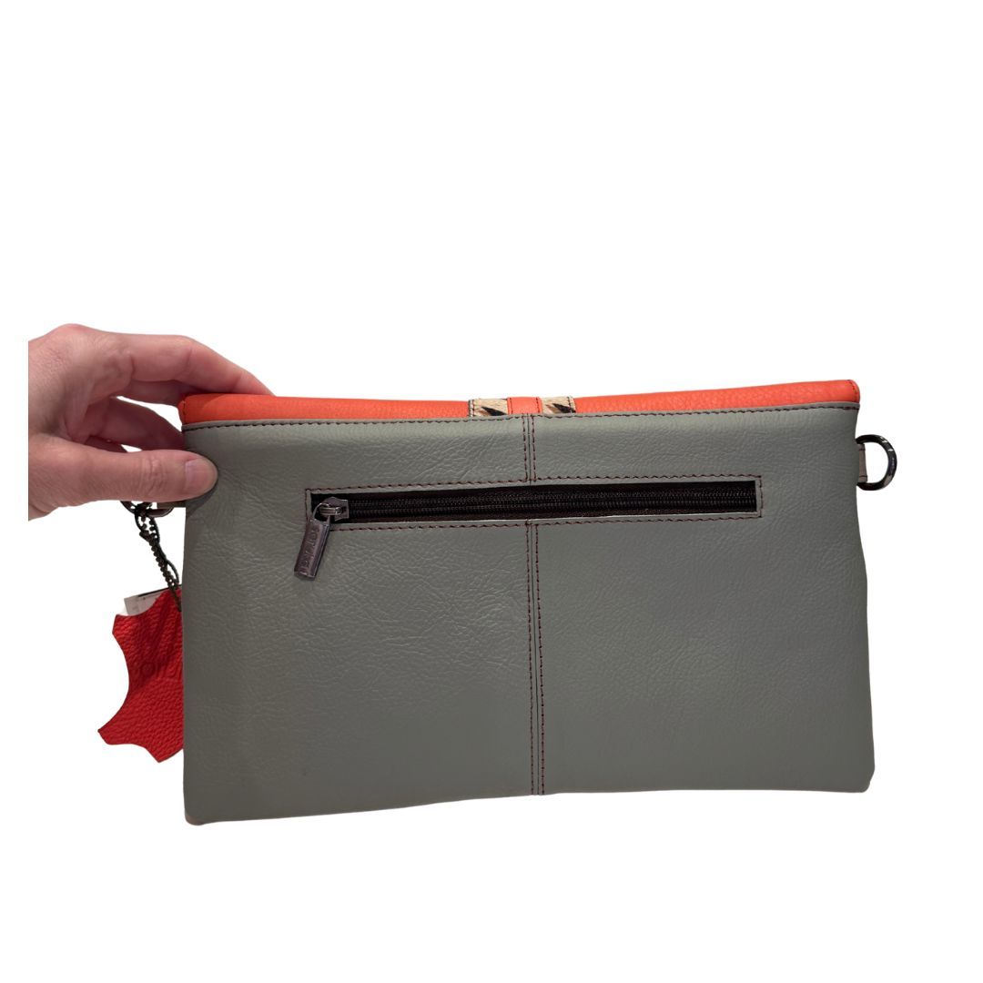 Bolso de piel pequeño y estrecho pero con colores impactantes, ideal para salir con poco peso.