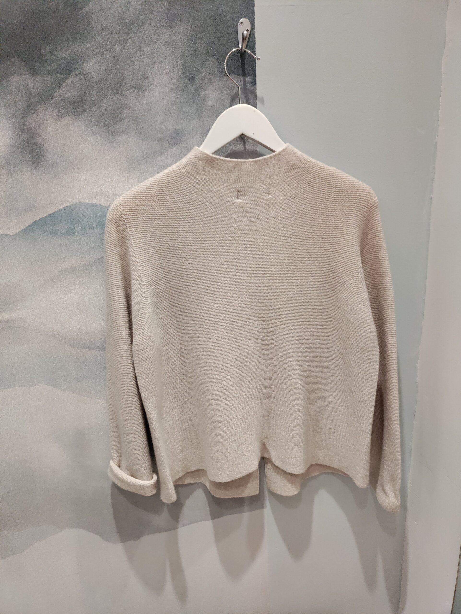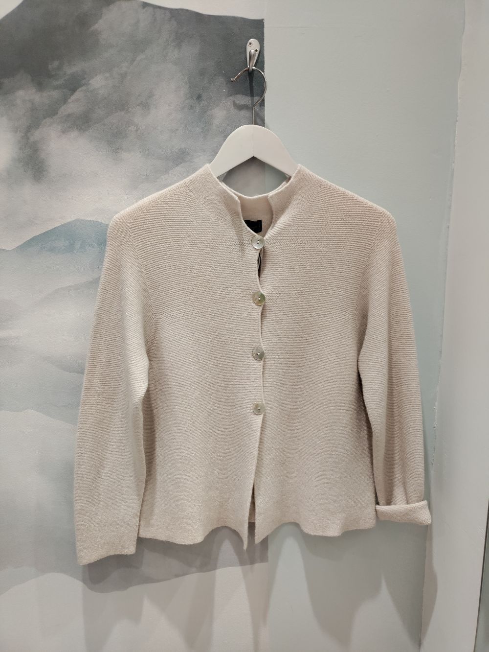 Chaqueta de punto básica en color blanco roto o piedra, muy clarita. Ideal como fondo de armario.