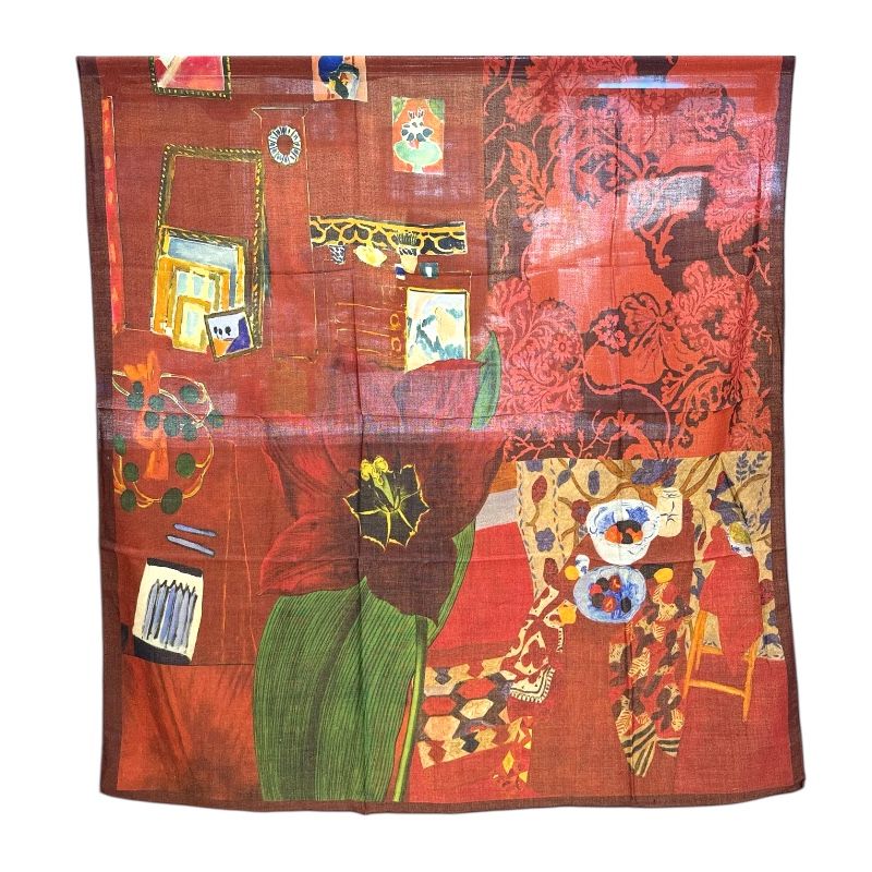 Fular de 20%Cashmere + 80%Lana con un estampado original sobre tonos granates.