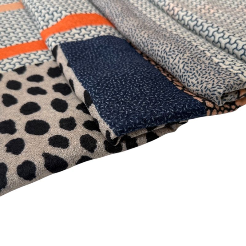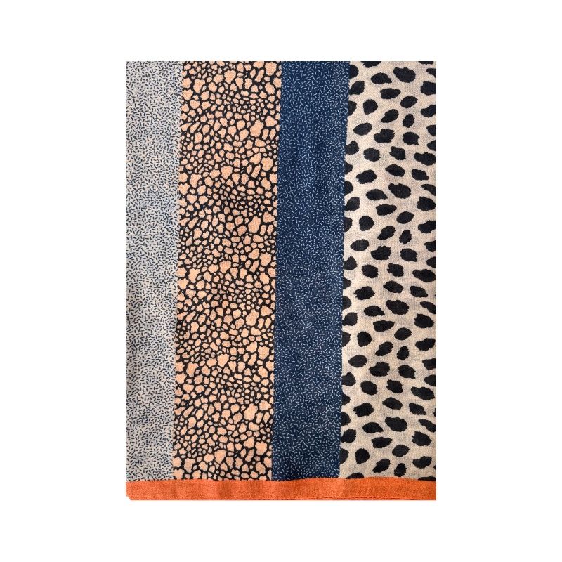 Fular en 30% lana 70% viscosa con estampado de cuadros y animal print.