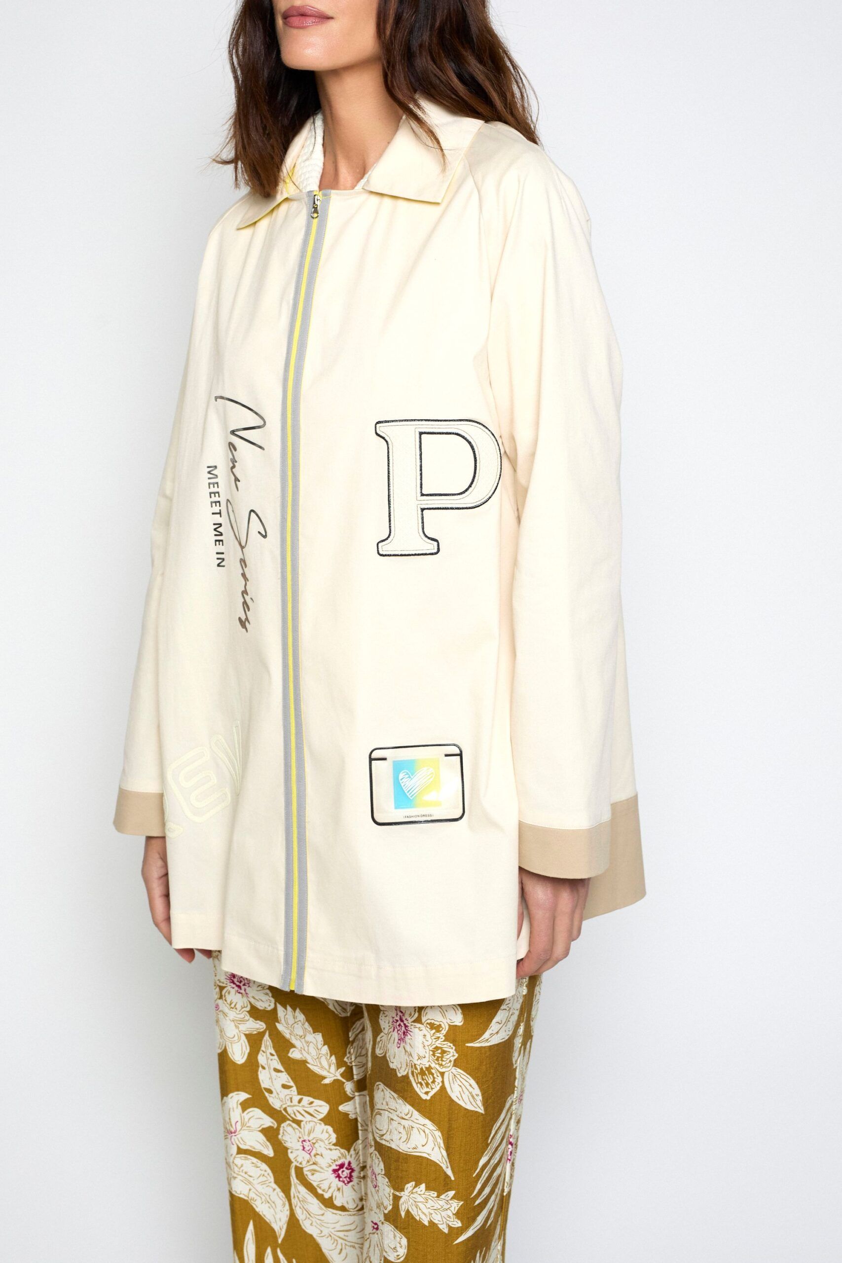 Parka confeccionada en algodón con detalles de patch en delantera. Cierre central con cremallera, cuello camisero y bolsillos laterales. Puños en contraste.