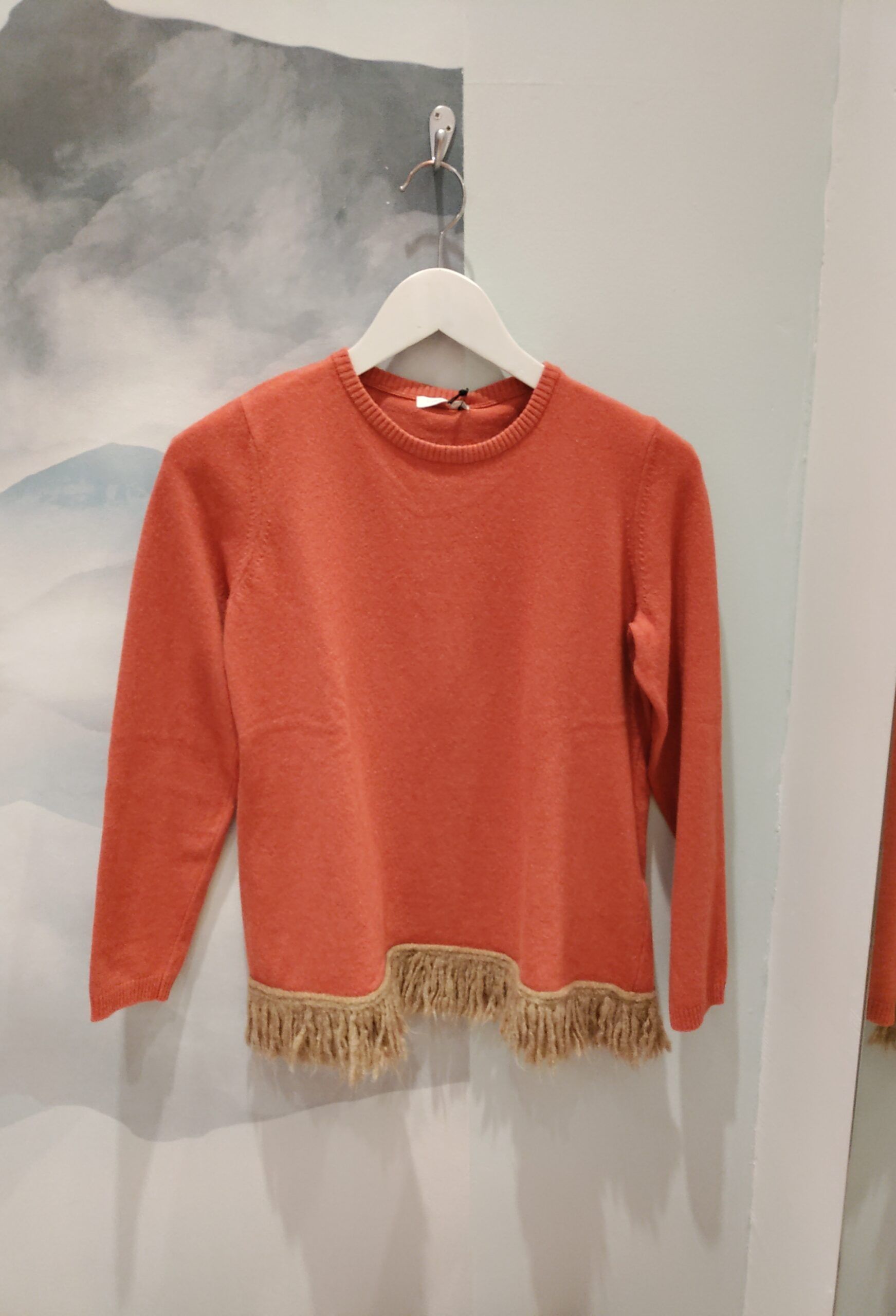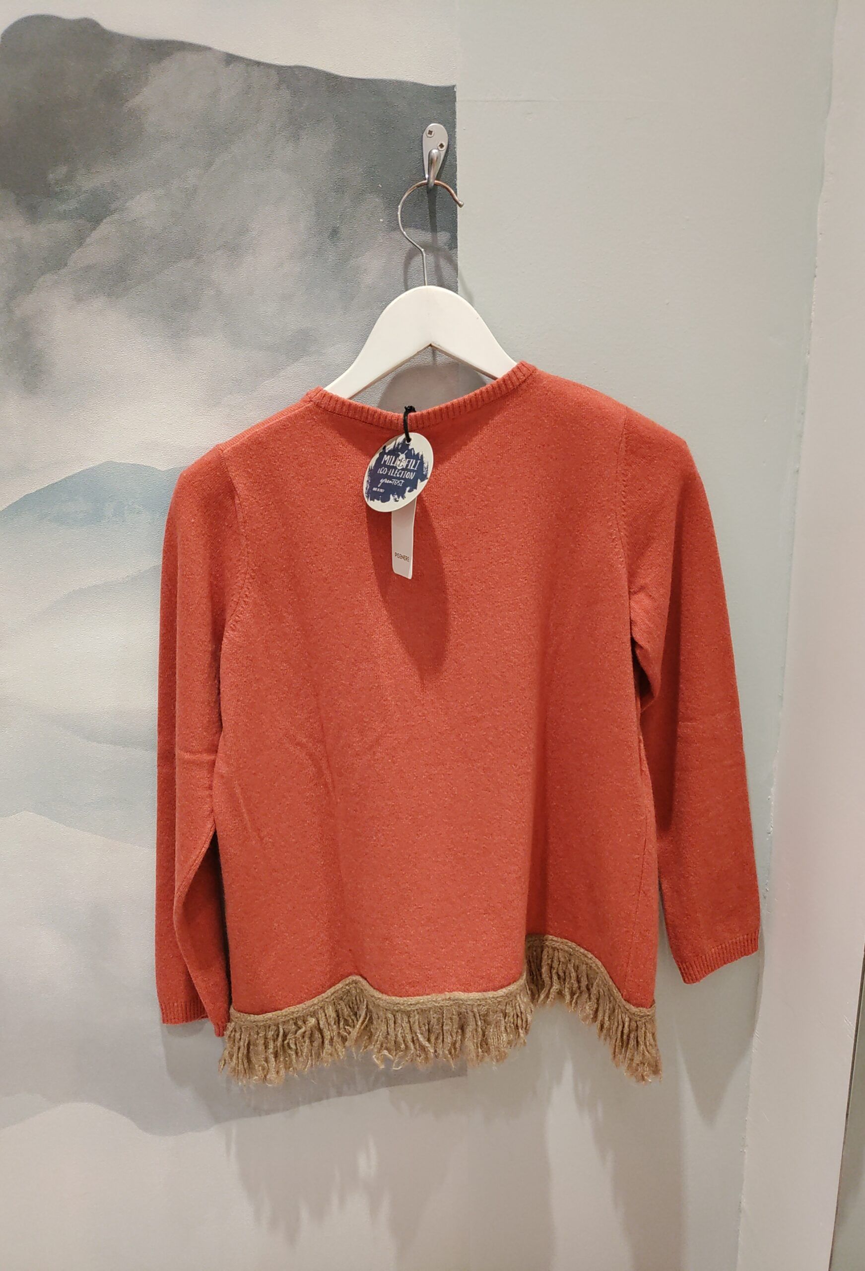 Jersey de punto en color naranja suave con flechos en la parte de abajo, muy gracioso.